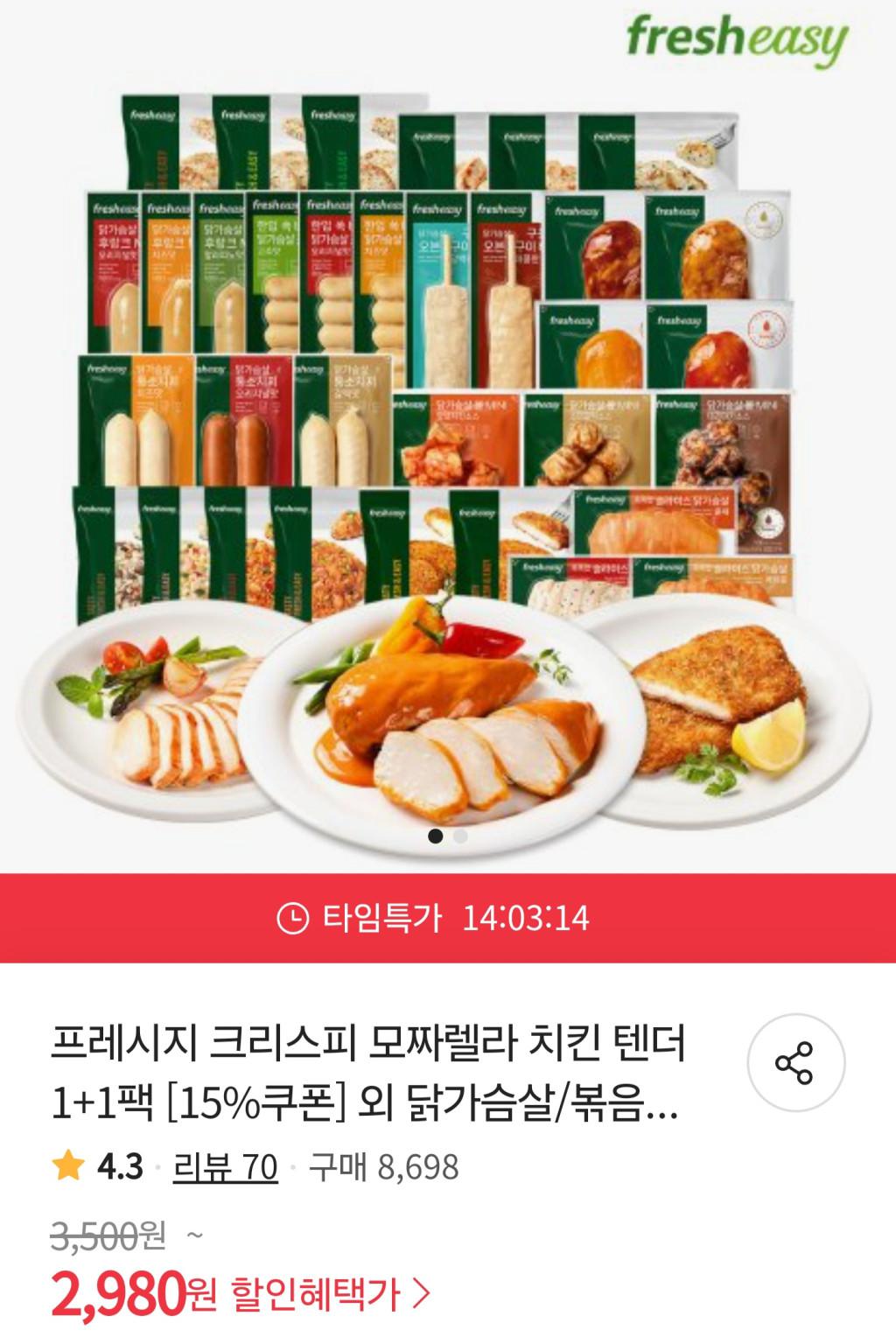 [위메프] 프레시지 크리스피 모짜렐라 치킨 텐더 2팩