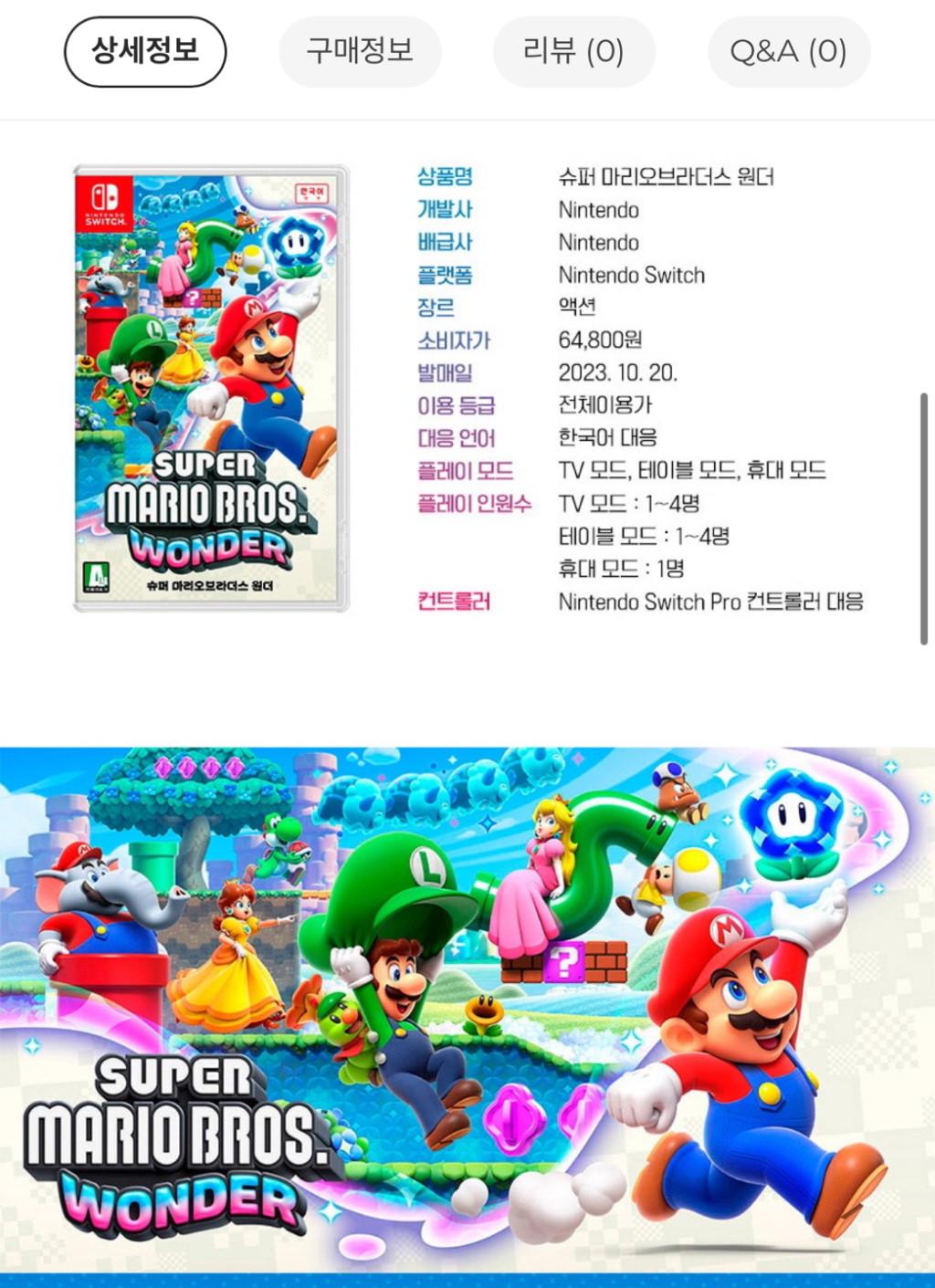 [기타] 닌텐도스위치 슈퍼 마리오 브라더스 원더(한글판)