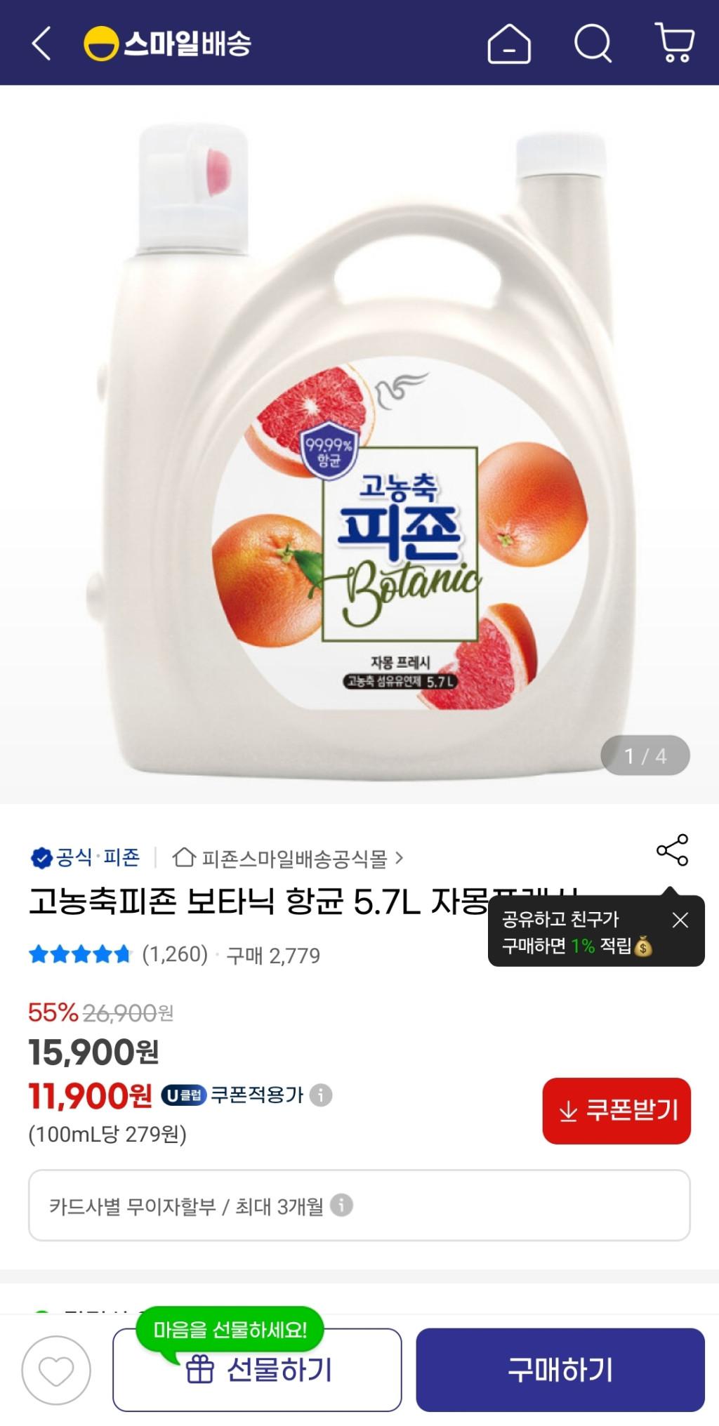 [G마켓] 고농축피죤 보타닉 5.7L 자몽프레시