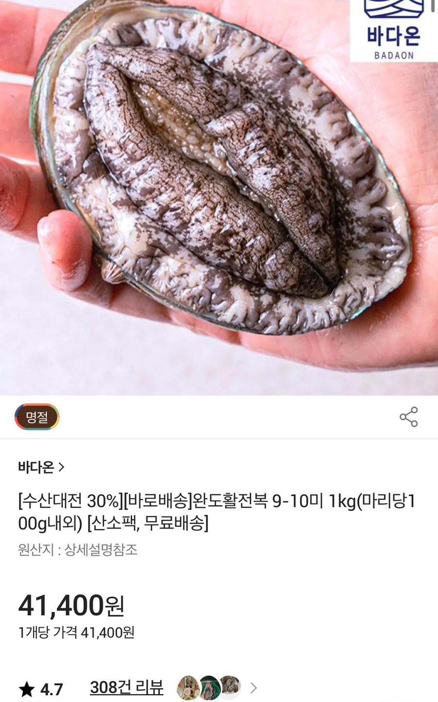 [SSG] 완도활전복 9-10미 1kg 28,980원