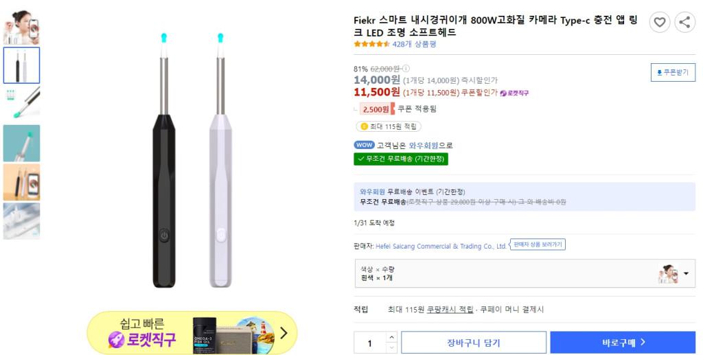 [쿠팡] Fiekr 스마트 내시경 귀이개