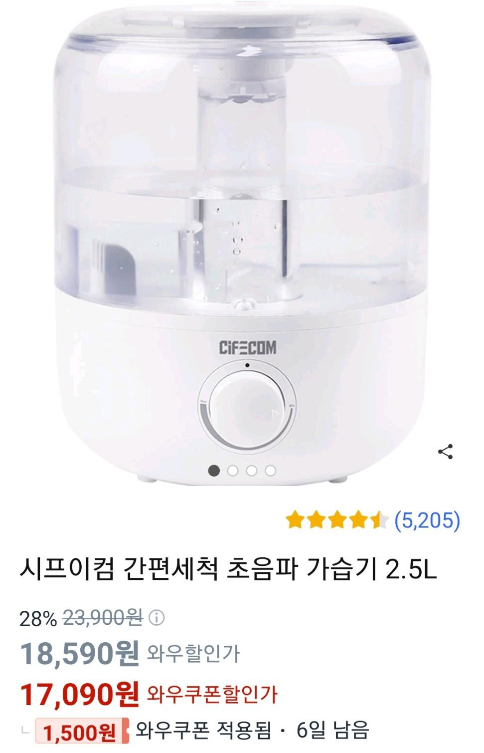 [G마켓] 시프이컴 간편세척 초음파 가습기 2.5L