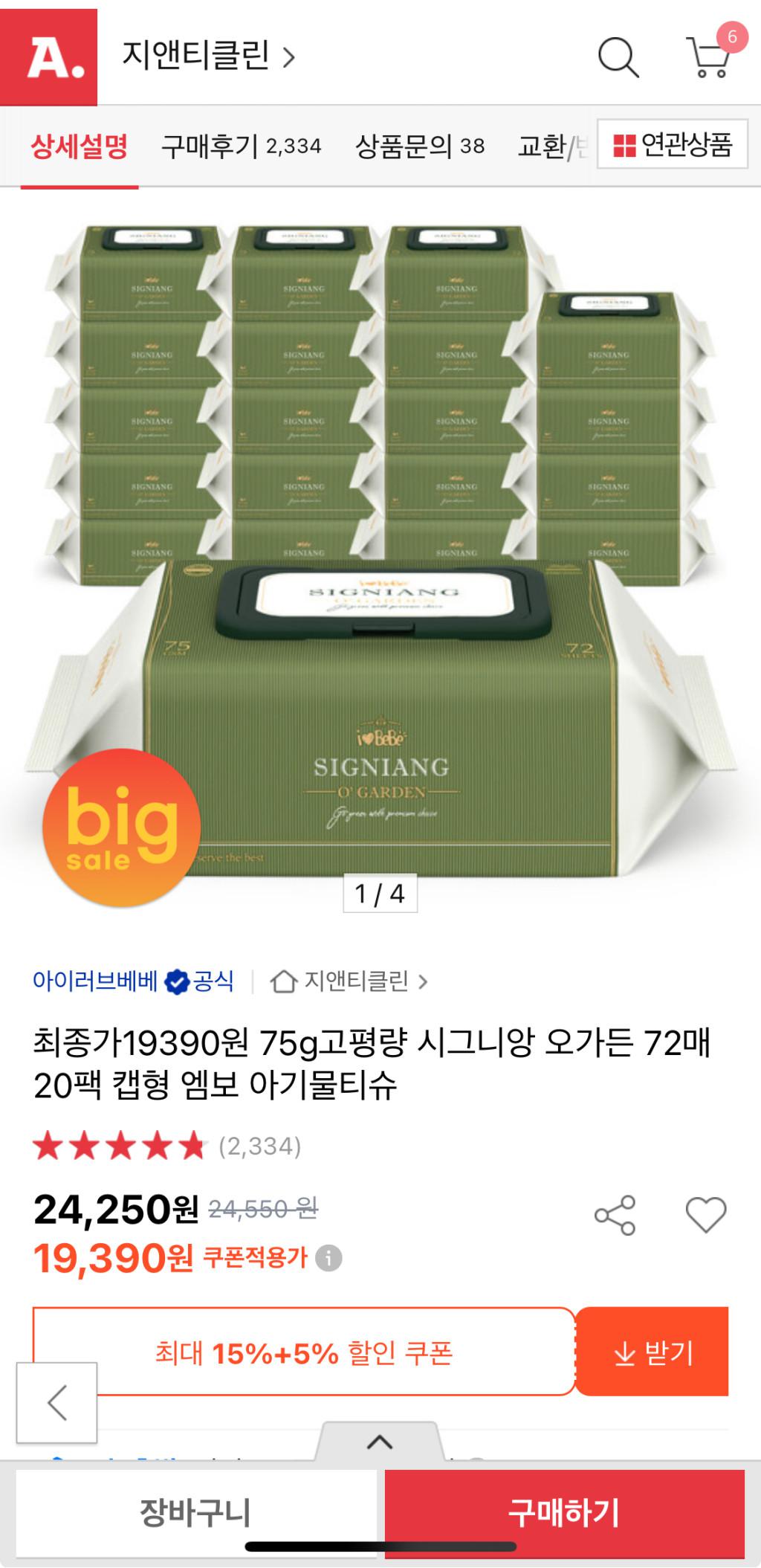 [옥션] 물티슈 아이러브베베 75g고평량 시그니앙 오가든 72매 20팩 캡형 (무배)