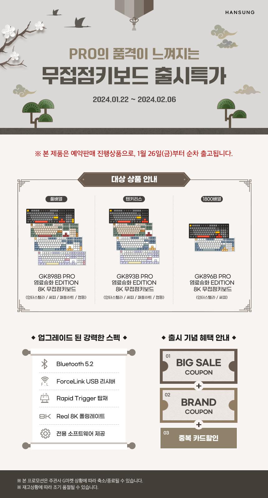 [지마켓] 한성컴퓨터, GK898B/GK893B PRO 염료승화 EDITION 8K 무접점키보드 출…