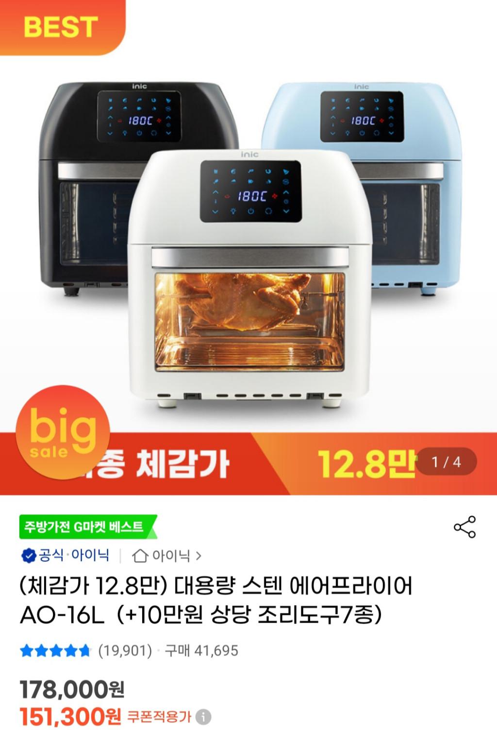 [G마켓] 아이닉 16L 오븐 에어프라이어 AO-16L +조리도구포함