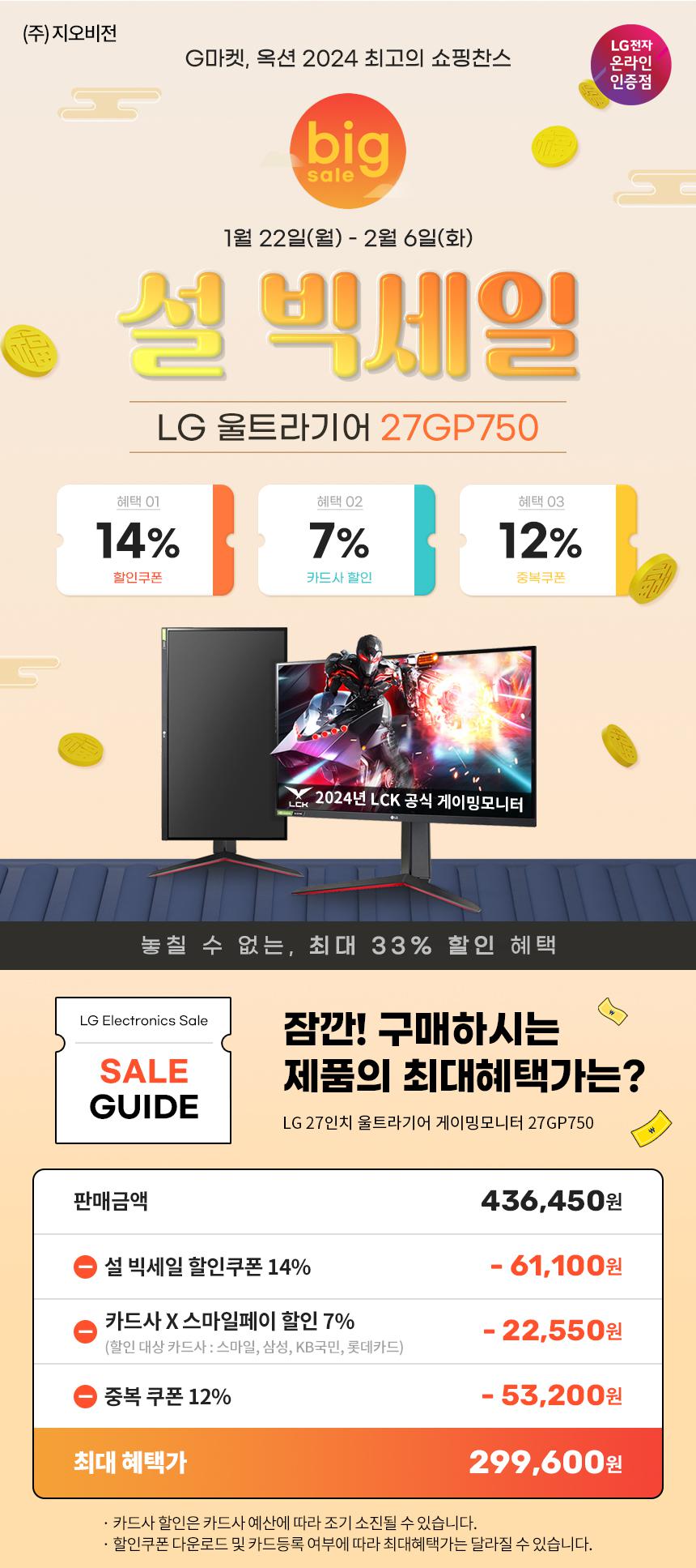 [G마켓] 설빅세일 LG 게이밍 27GP750/ 4K모니터 27UP550N 최대 33%할인~