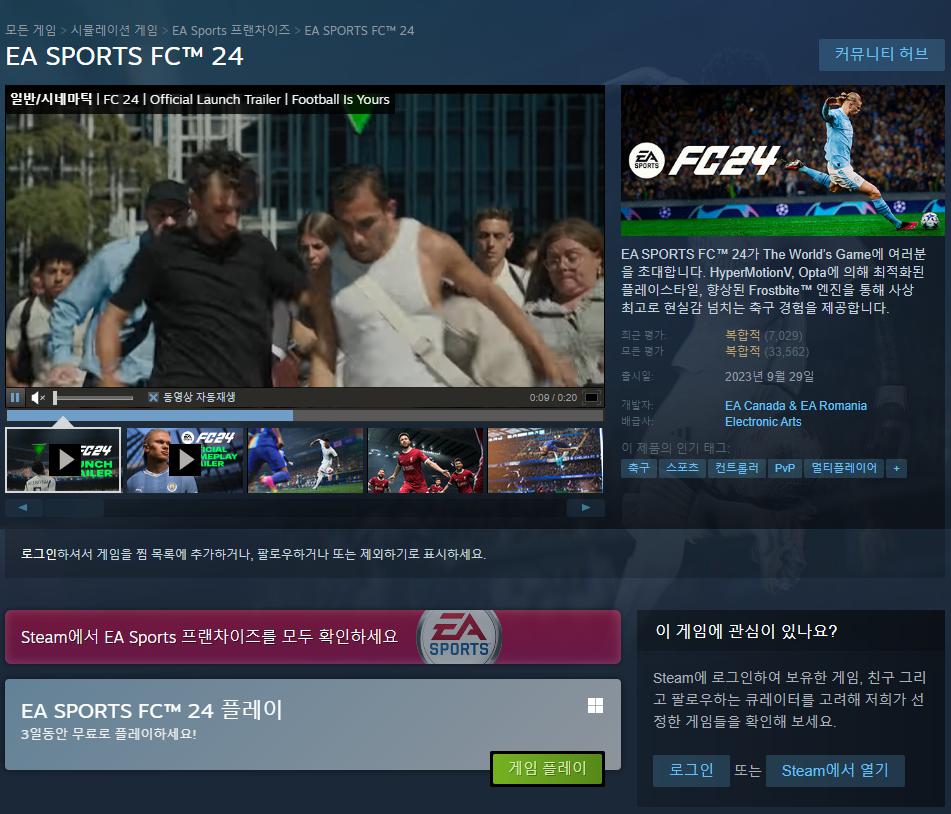 [steam] EA SPORTS FC24 (~1월 22일까지 무료플레이)