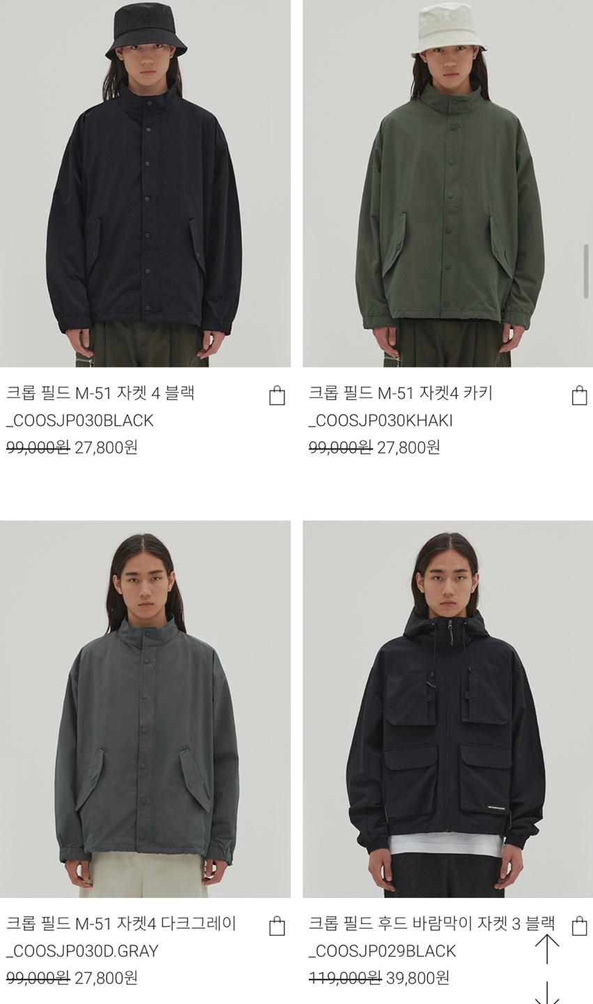 [기타] 크롭 필드 M-51 자켓 (블랙, 카키, 다크그레이)