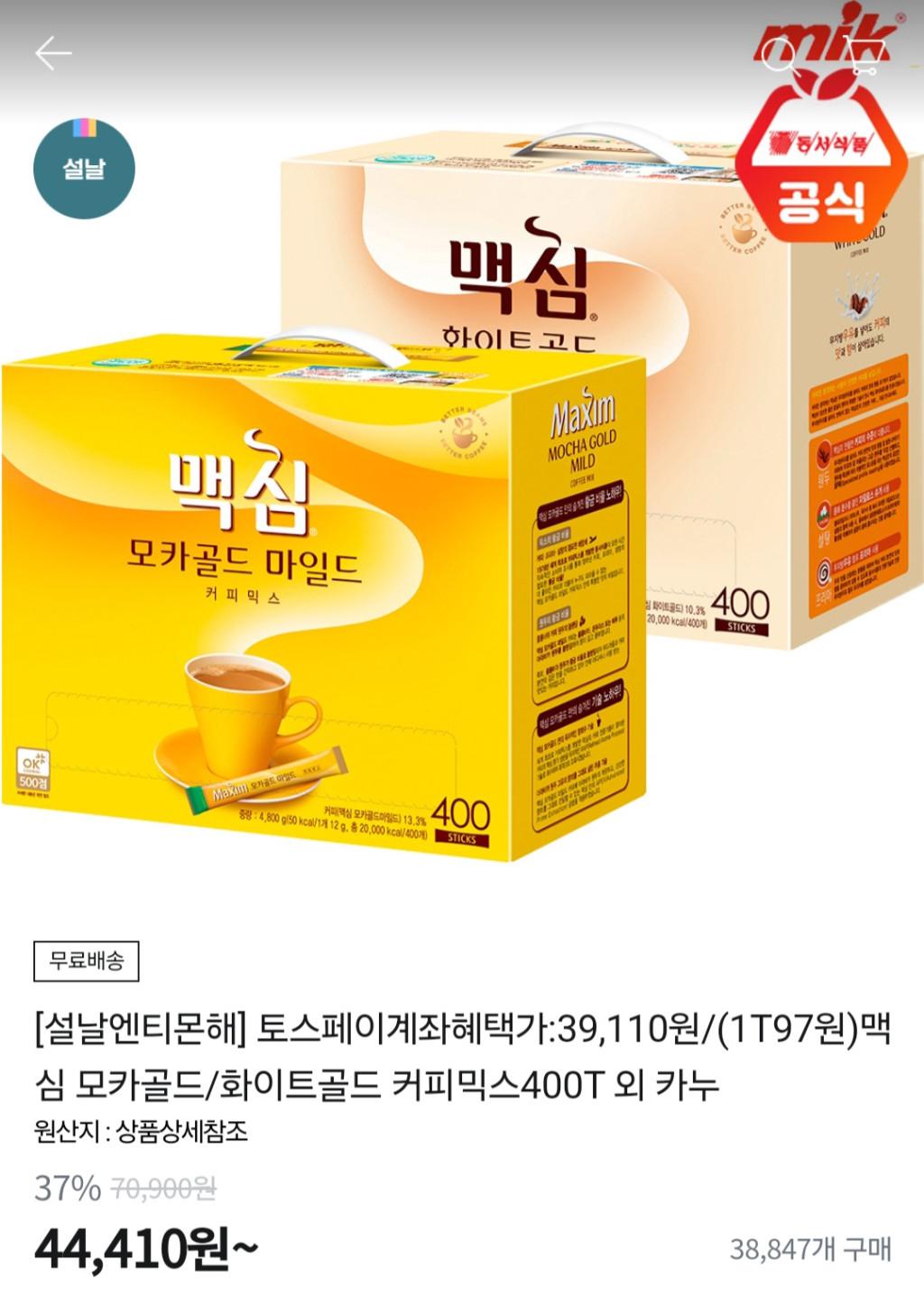 [티몬] 맥심 화이트믹스 400T 토스페이 계좌결제