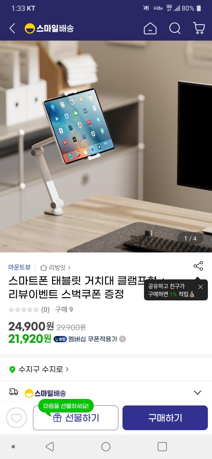 [G마켓] 스마트폰 태블릿 거치대 클램프형/기본형+리뷰작성시 스벅깊콘