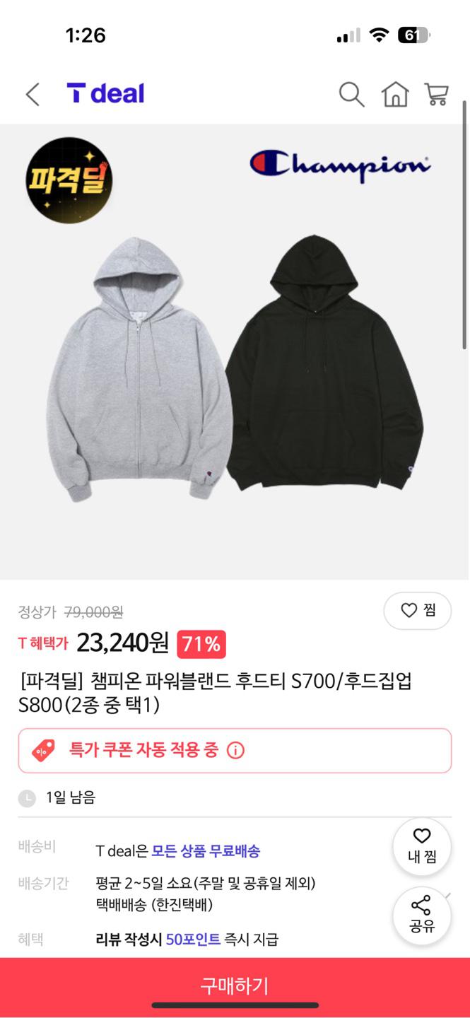 [기타] [티딜] SKT 파격딜 챔피온 후드티/후드집업 무료배송