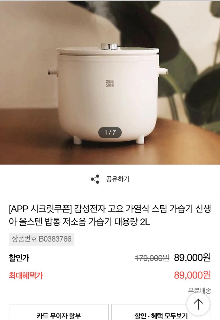 [기타] 감성전자 2L 저소음 스팀식 가습기