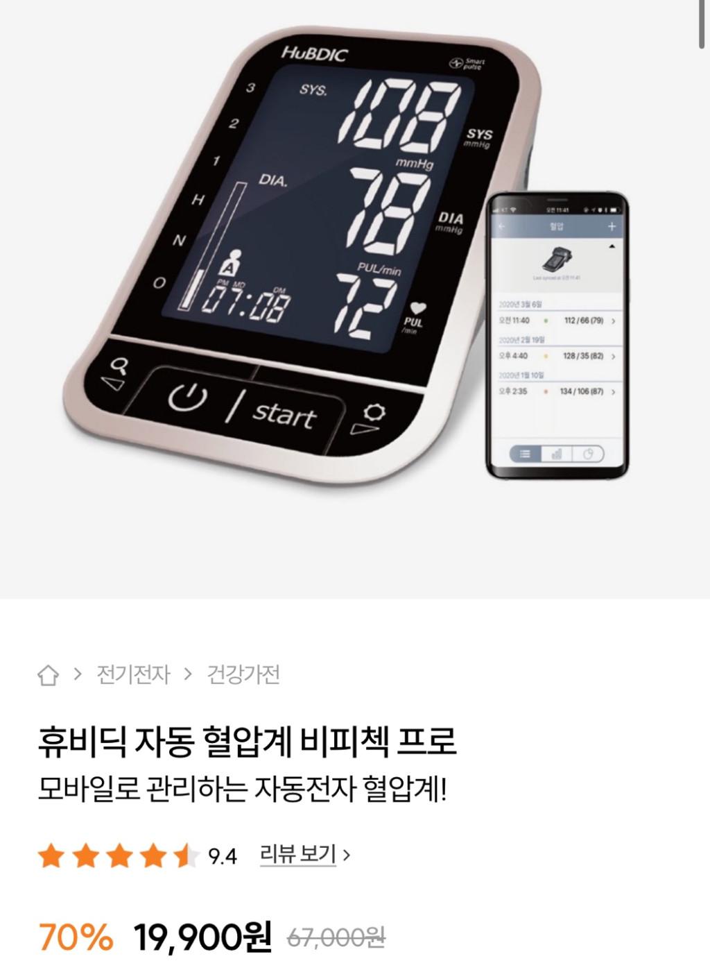 [기타] 휴비딕 자동 혈압계 비피첵 프로