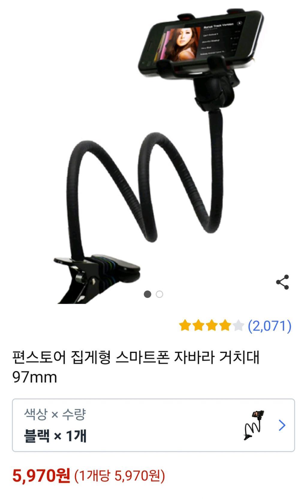 [쿠팡] [쿠팡]편스토어 집게형 스마트폰 거치대( 5970/무배)
