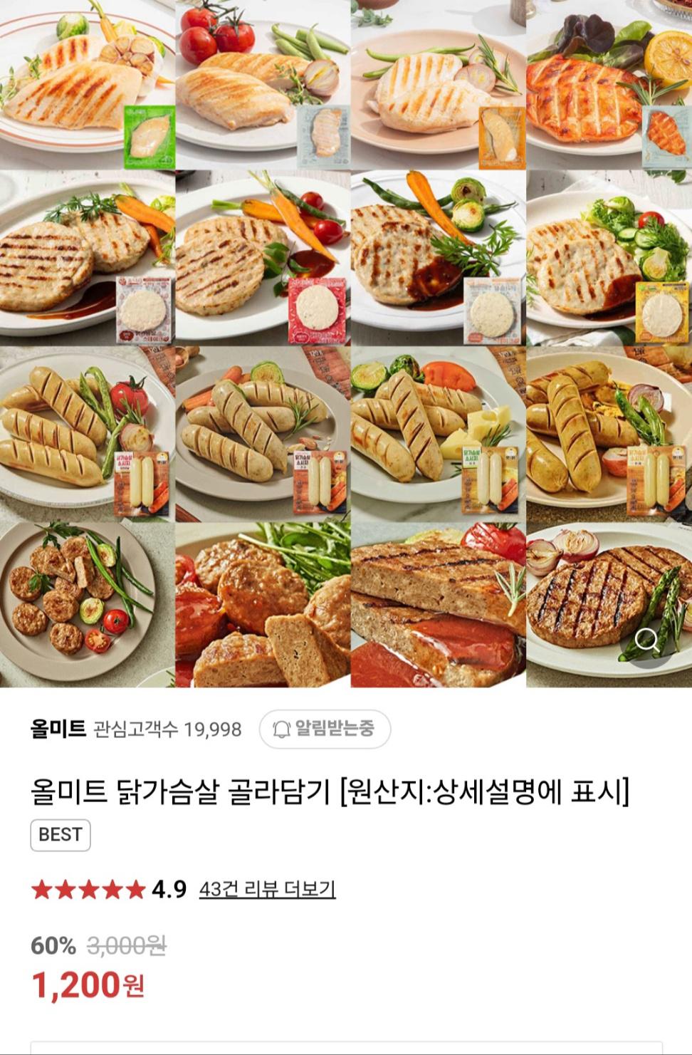 [네이버] 네이버)닭가슴살 골라담기 1200원 /3000