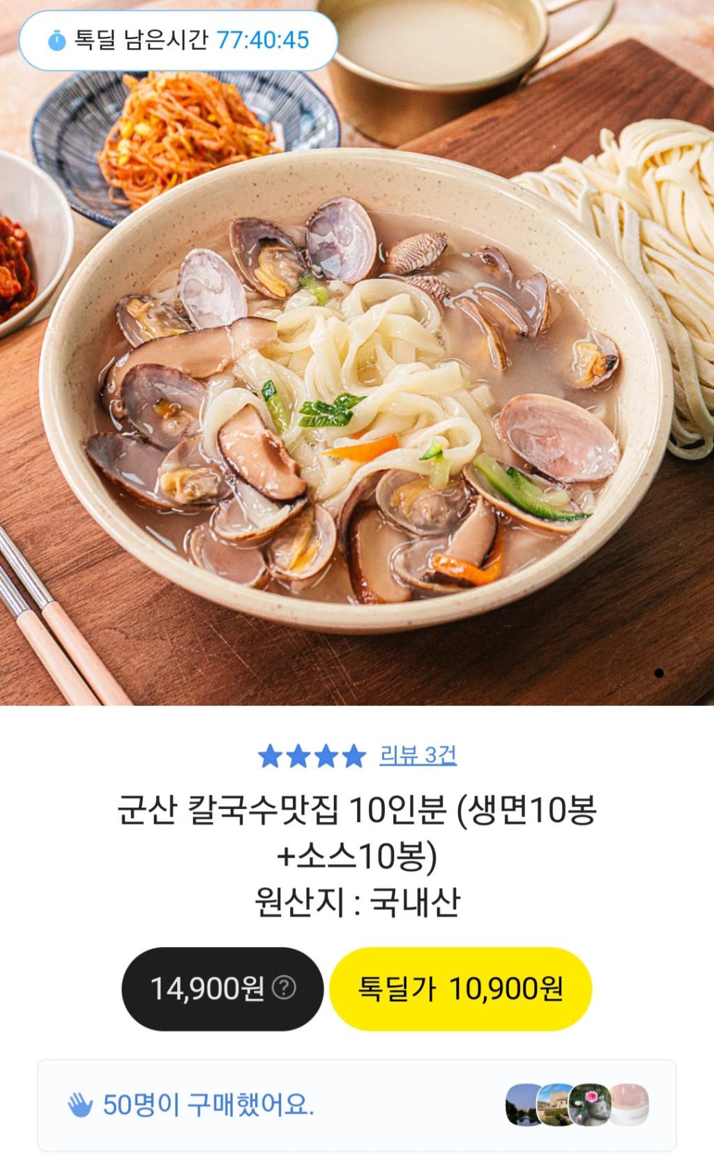 [카카오톡딜] 군산 칼국수 10인분 (10,900원 / 무료배송)