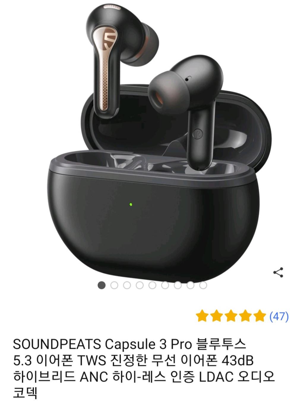 [쿠팡] SOUNDPEATS Capsule 3 Pro 블루투스 5.3 ANC 이어폰 (48,20…