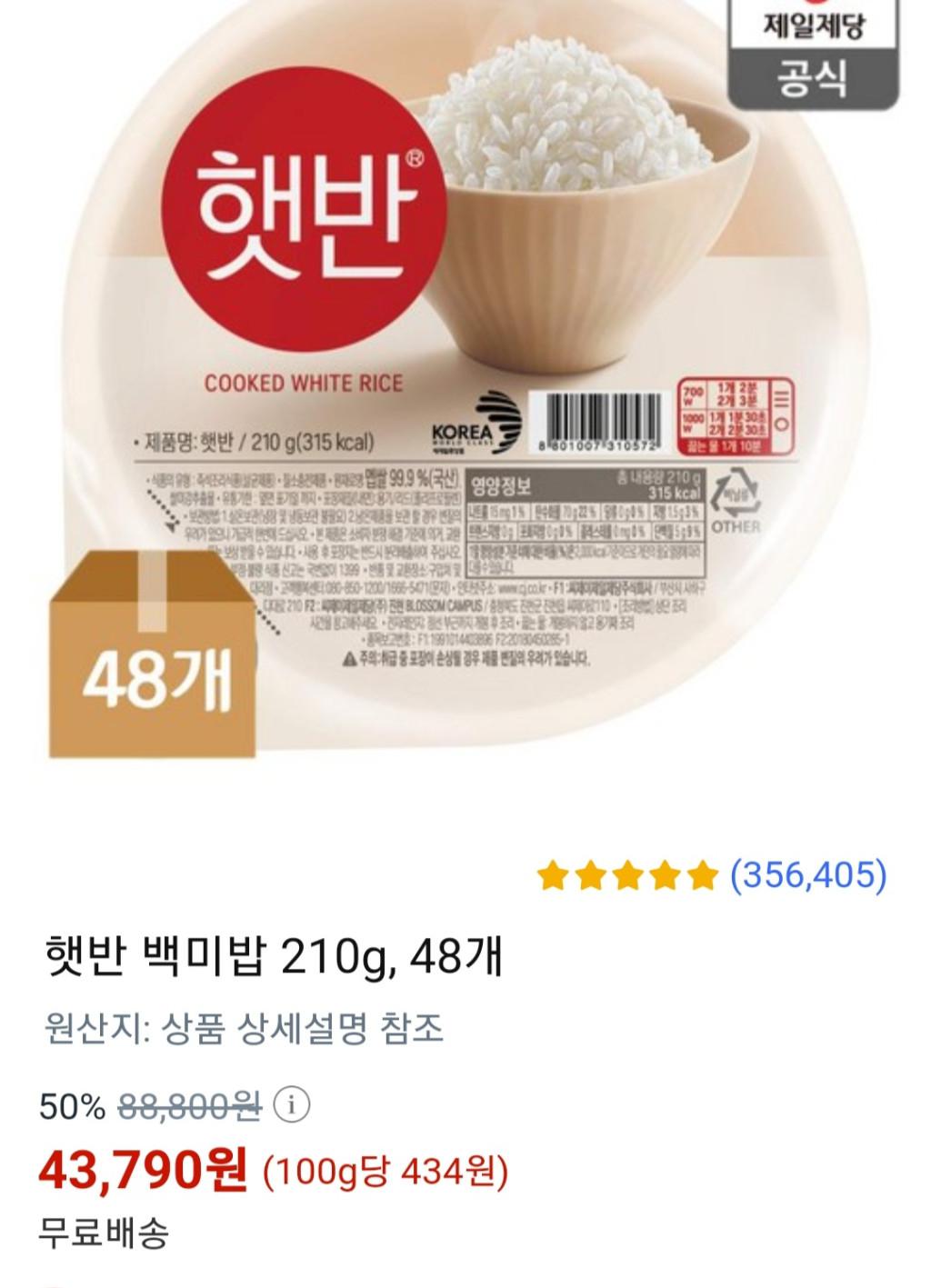 [쿠팡] CJ제일제당 햇반48개 50%할인 (무료배송)