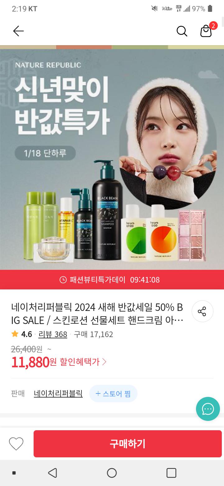 [위메프] 네이처리퍼블릭 블랙빈 탈모샴푸 샴푸 520ml+토닉 120ml+트리트먼트 50ml