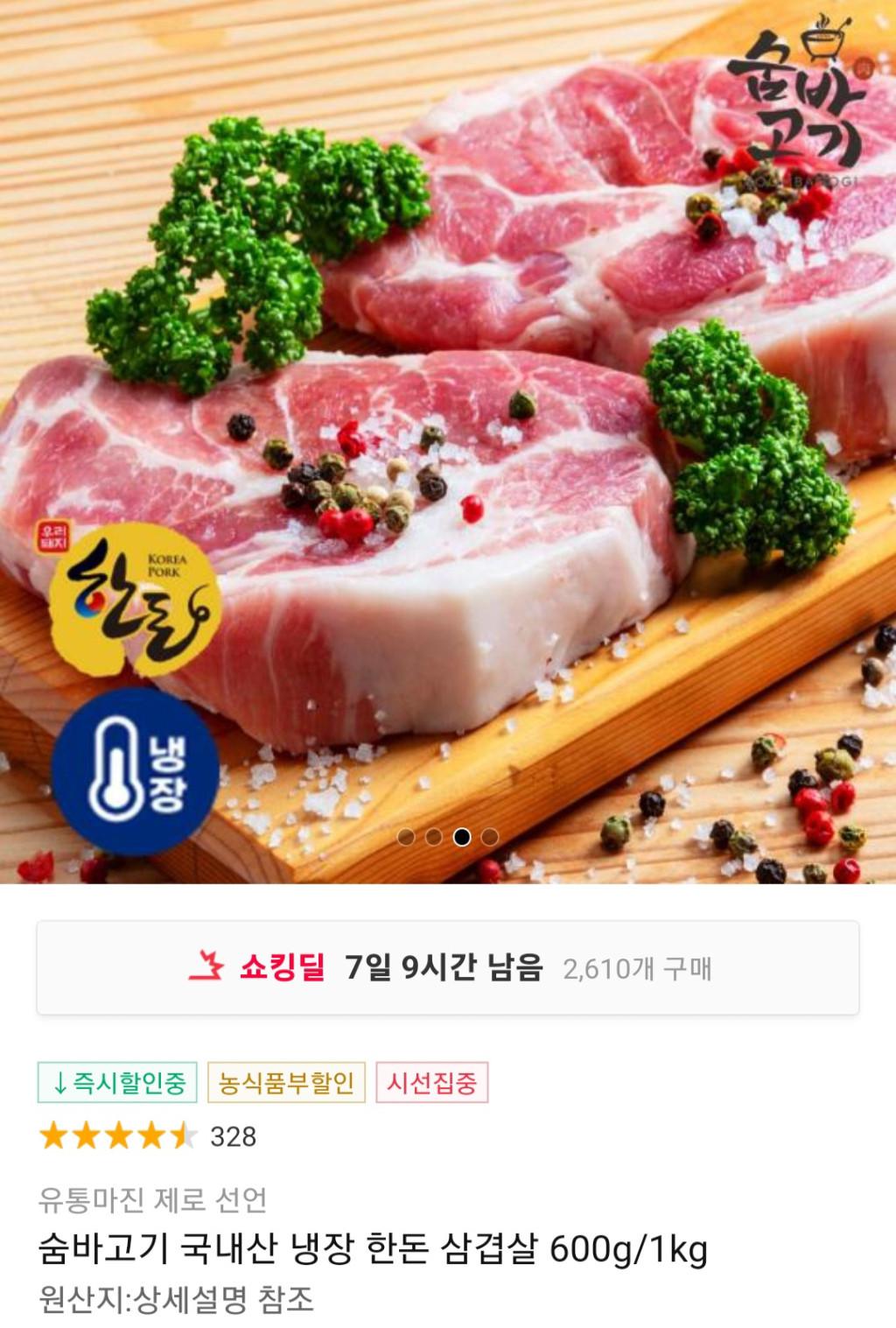 [11번가] 국내산 냉장 한돈 삼겹살 600g (7,680원 / 3만이상무료)
