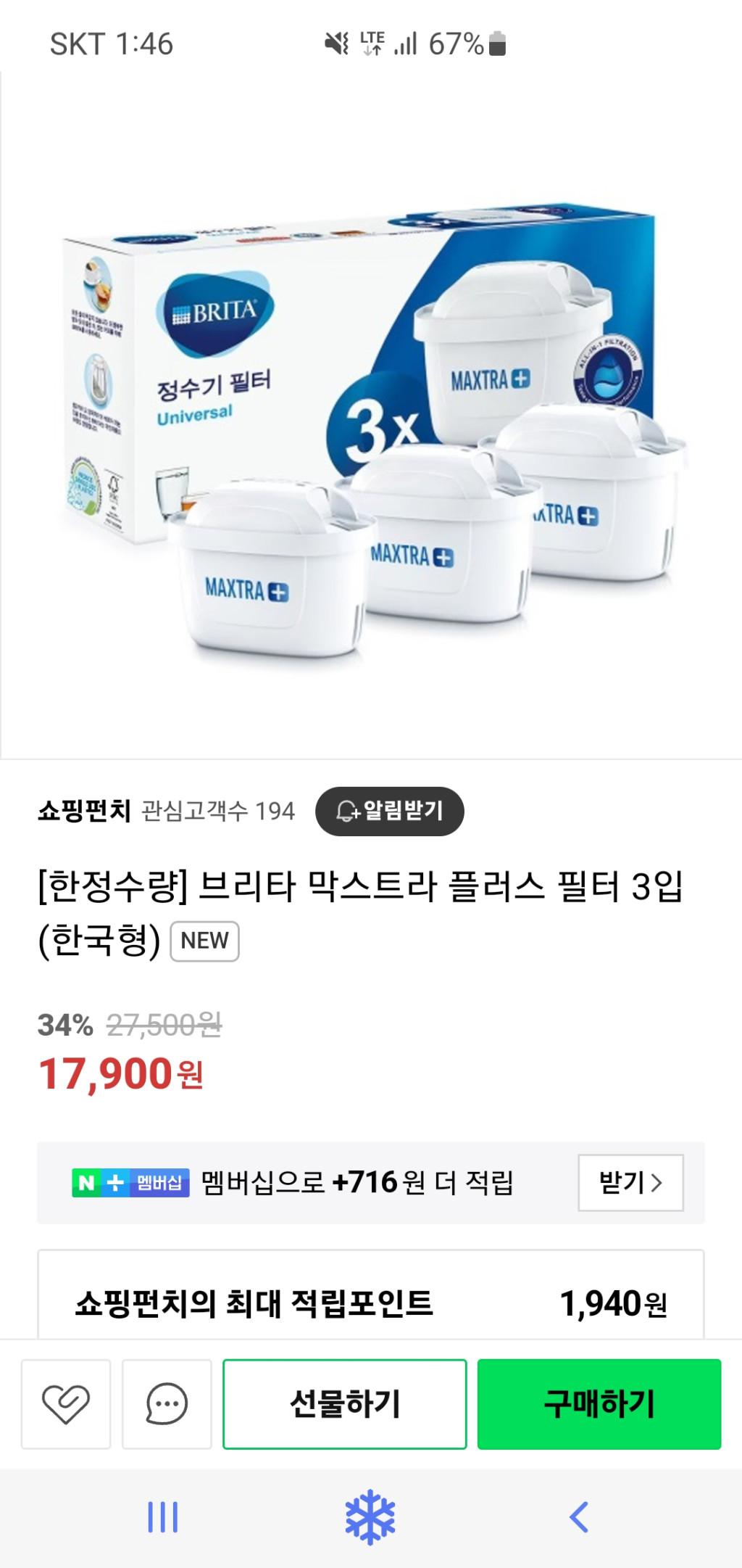 [네이버] 브리타 막스트라플러스 필터3입/무배