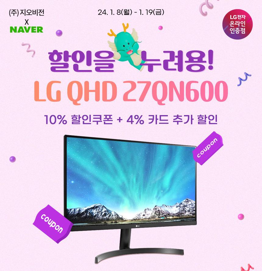 [네이버] ⭐슈퍼럭키세일⭐LG전자 27QN600 최대 14% 할인