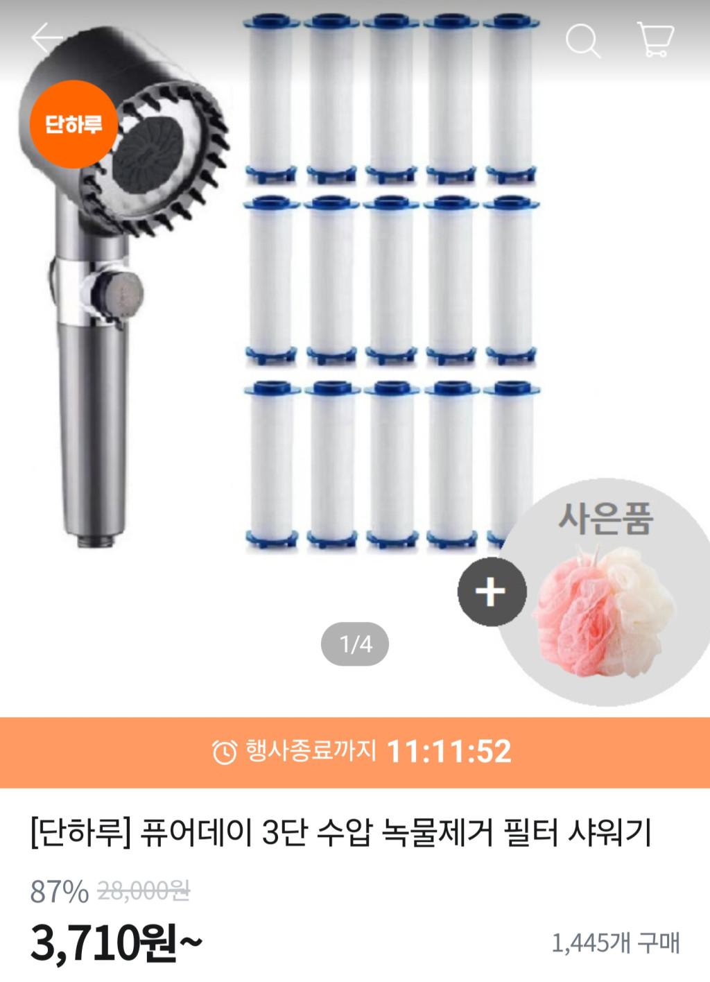 [티몬] 퓨어데이 3단 수압 필터샤워기(필터포함)