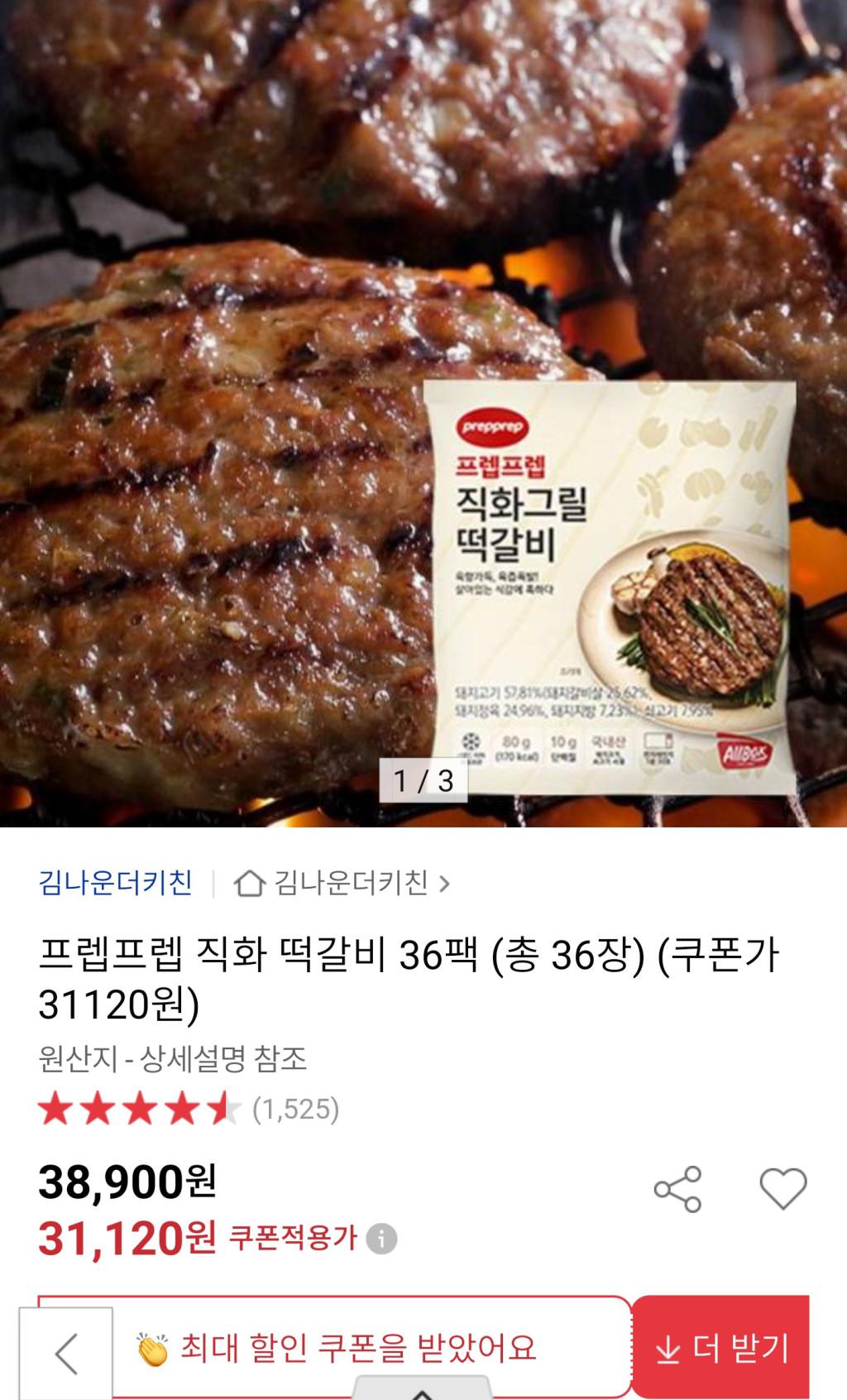 [옥션] 직화 떡갈비 36팩-총36장(무배)