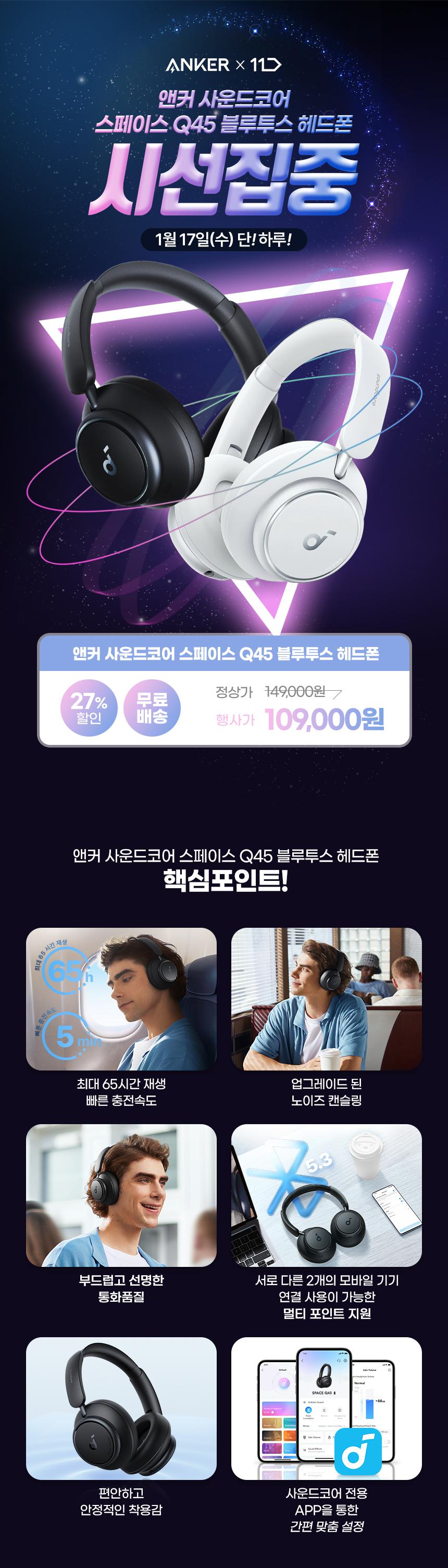 [11번가] 앤커 x 11번가 시선집중!! 사운드코어 스페이스 Q45 블루투스 헤드폰 할인