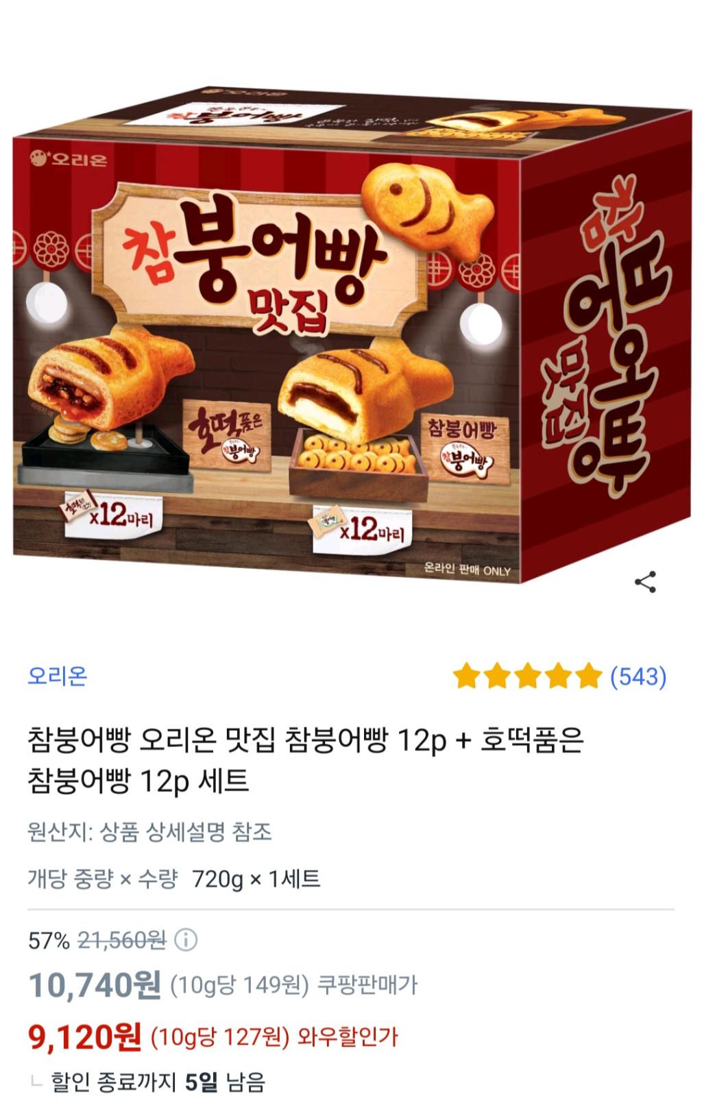 [쿠팡] 참붕어빵 오리온 맛집 참붕어빵 12p + 호떡품은 참붕어빵 12p 세트
