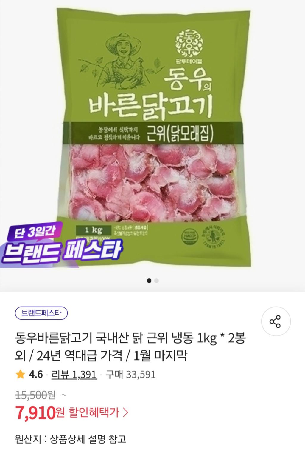 [위메프] 동우 국내산 닭근위 1kg + 1kg