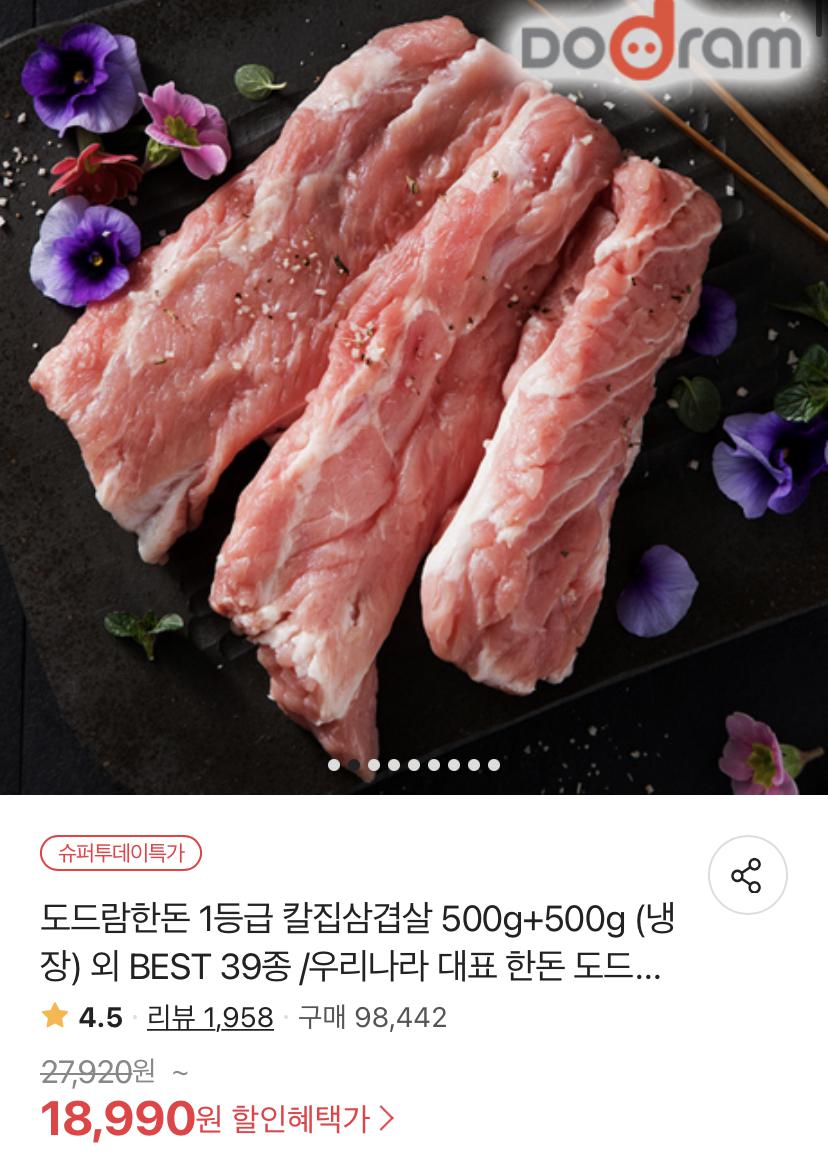 [위메프] 도드람 냉장 한돈 등심꽃살 구이용 500g