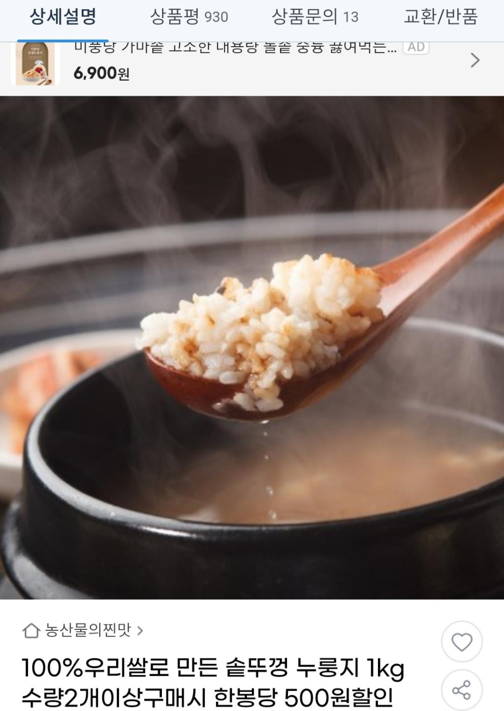 [G마켓] 솥뚜껑 누룽지 1kg (6,980원 / 무료배송)