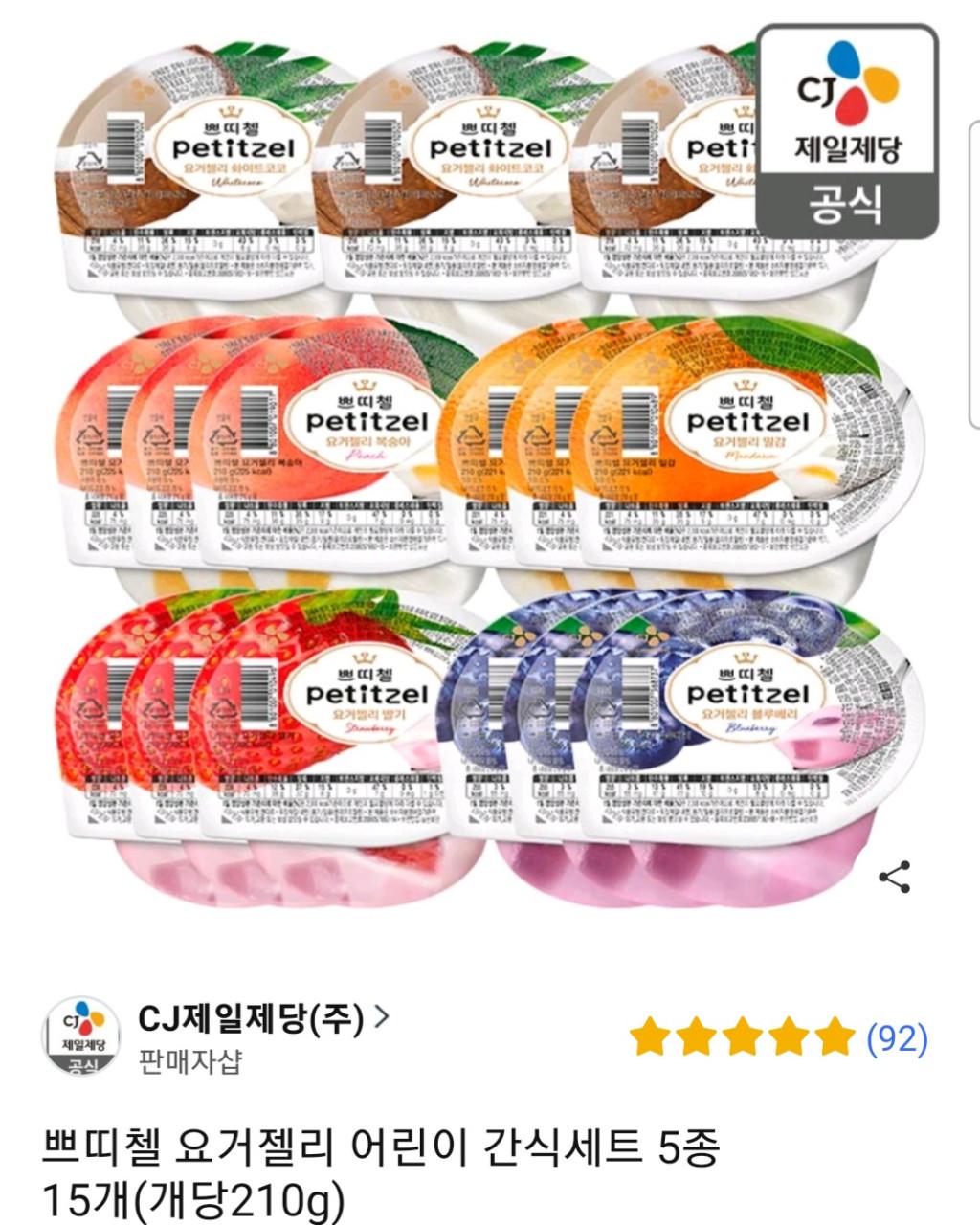 [쿠팡] 쁘띠첼 요거젤리 5종 15개 (21,000원 / 무료배송)
