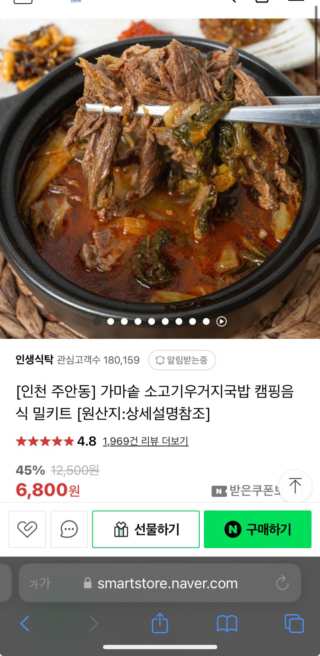 [네이버] [인천 주안동] 가마솥 소고기우거지국밥 2인분