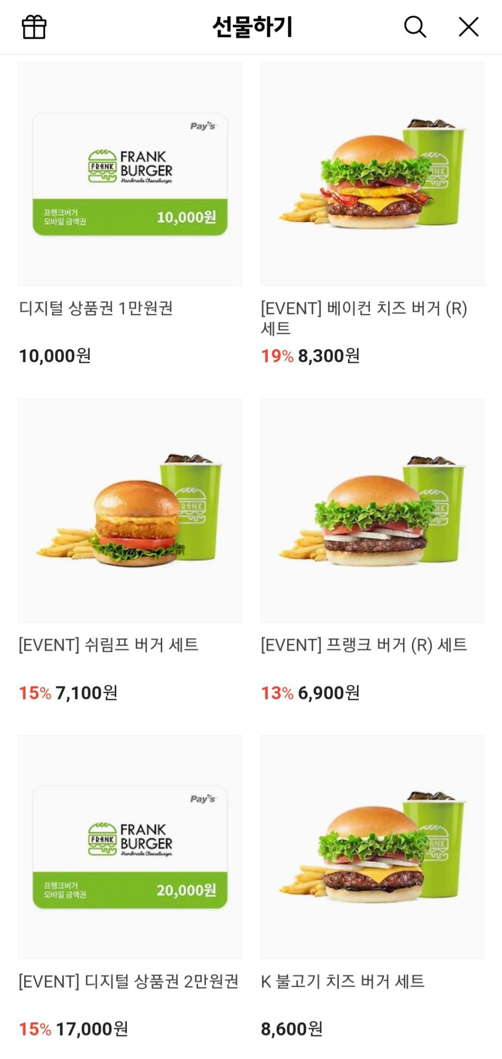 [카카오톡딜] 프랭크버거 세트 할인
