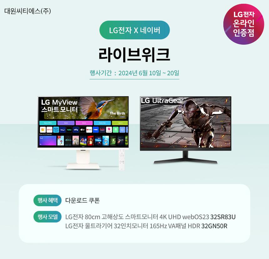 [네이버] LG 모니터 32SR83U / 32GN50R 다운로드 추가 쿠폰 진행 안내!