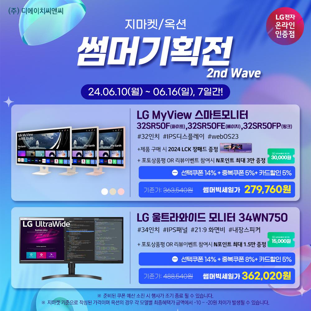 [G마켓] LG 썸머 2nd Wave기획전 27SR50F외 1건 최대 27%할인(혜택가:239,6…