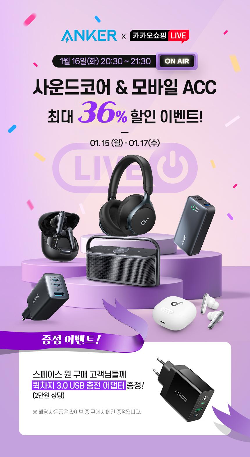 [카카오톡딜] 앤커 인기 제품 최대 36% 할인! 카카오 쇼핑라이브 진행