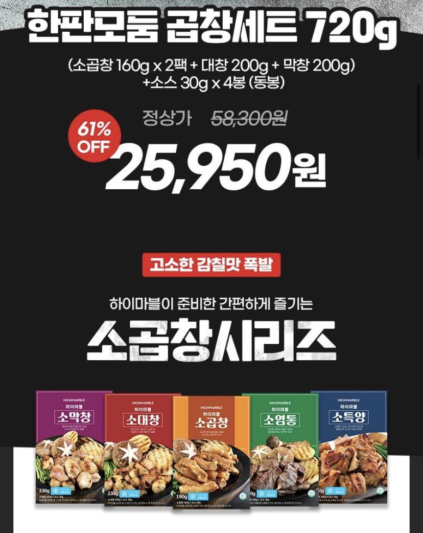 [위메프] 곱창세트 720g 2~3인분(소곱창160gx2팩+대창200g+막창200g)+소스30g …