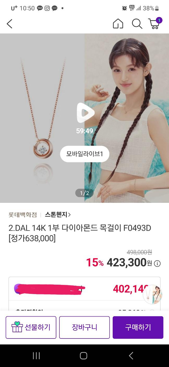 [기타] 스톤헨지 DAL 14K 1부 다이아몬드 목걸이 15% 할인