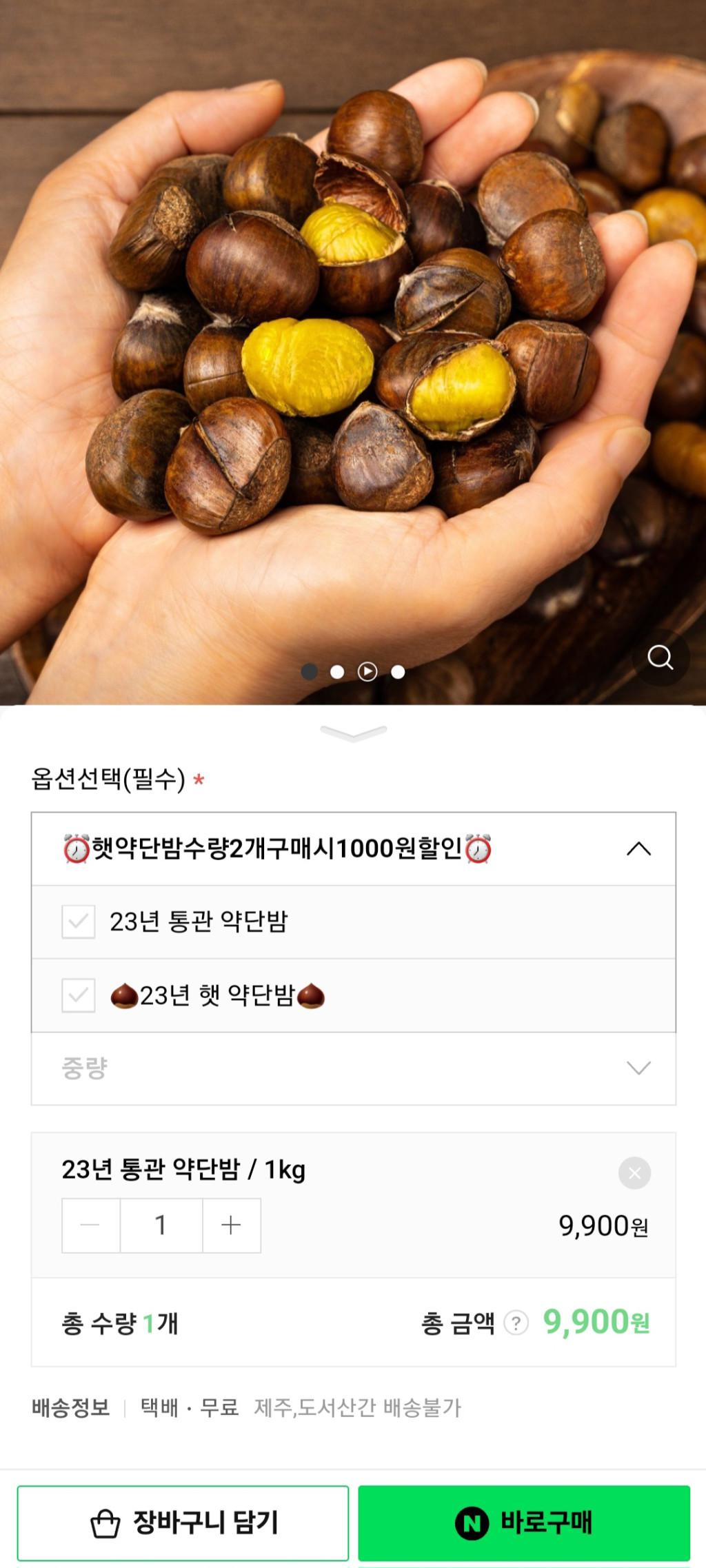 [네이버] 칼집 약단밤 1kg 9.900원/무배
