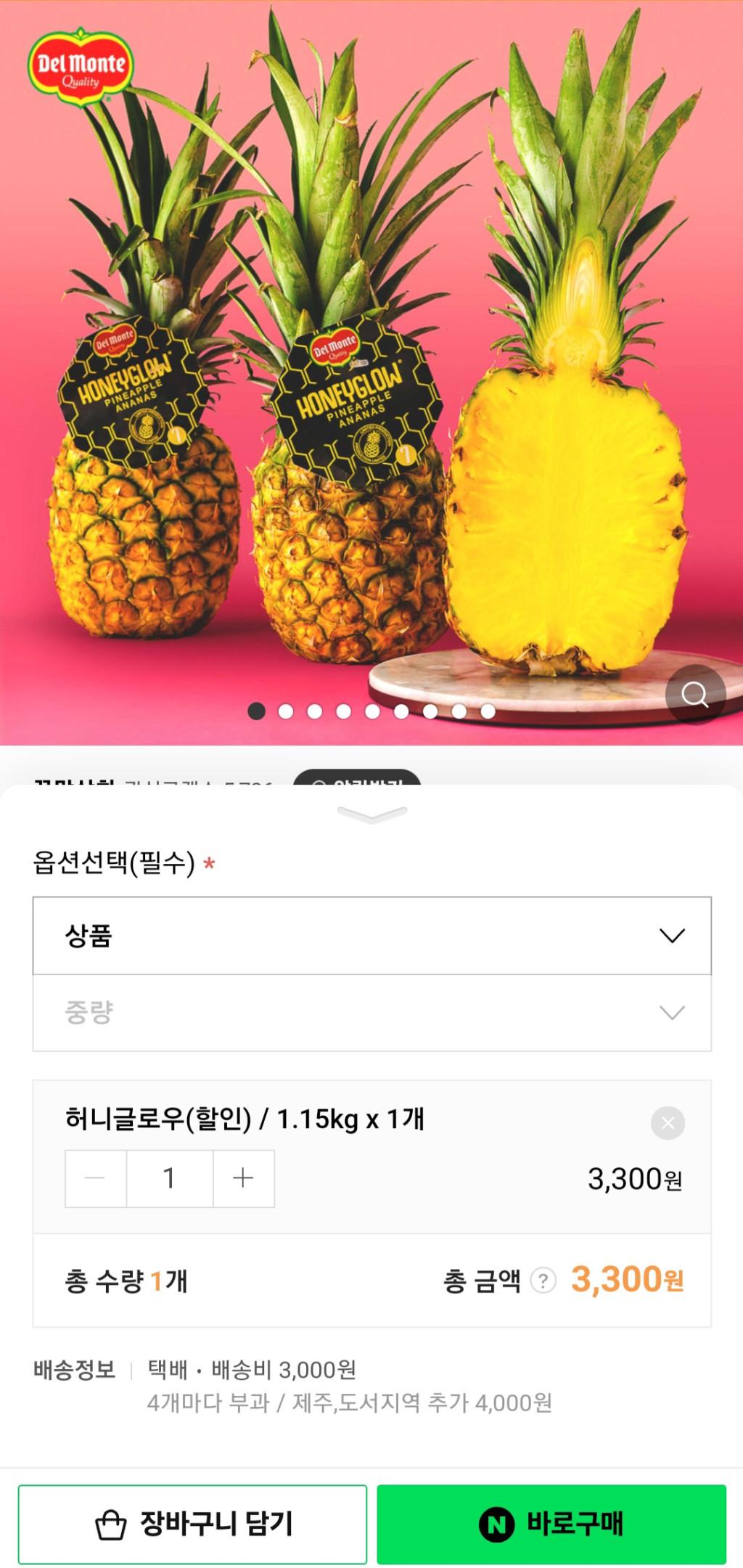 [네이버] 허니글로우 파인애플 1.15kg 3,300원/유배