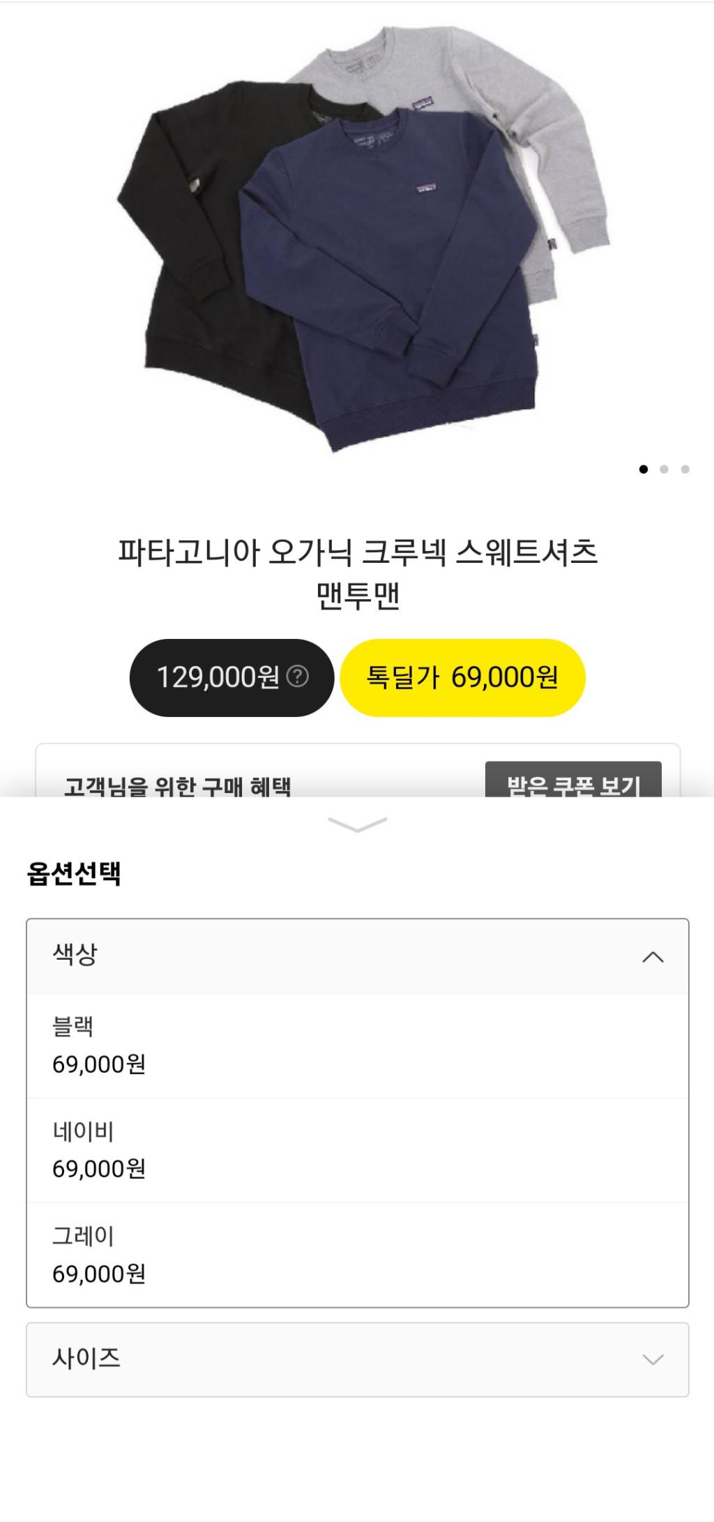 [카카오톡딜] 파타고니아 오가닉 크루넥 스웨트셔츠 맨투맨 64,000원/무배