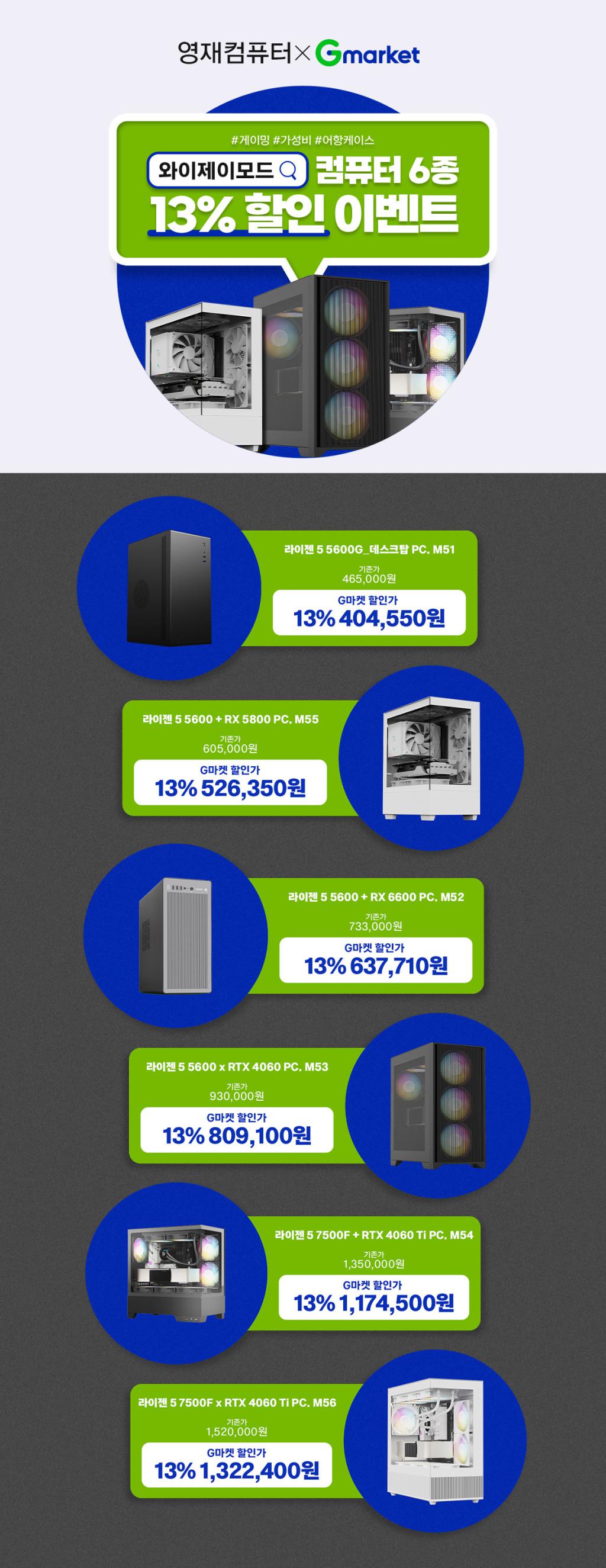 [G마켓] [영재컴퓨터] G마켓 컴퓨터 6종 13% 할인 이벤트