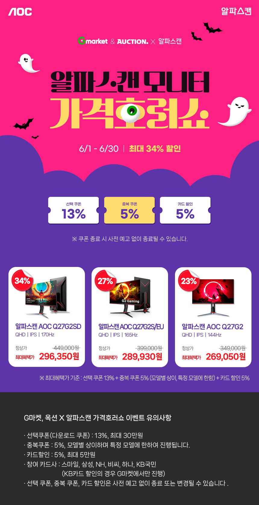 [G마켓] [지마켓] 알파스캔 27인치 QHD 게이밍 모니터 3모델 할인 안내 (269,050 /…