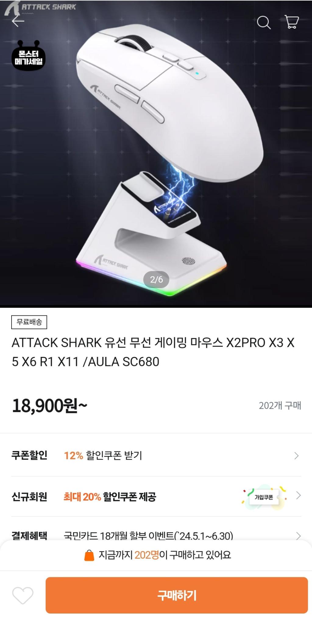 [티몬] ATTACK SHARK 유선 무선 게이밍 마우스