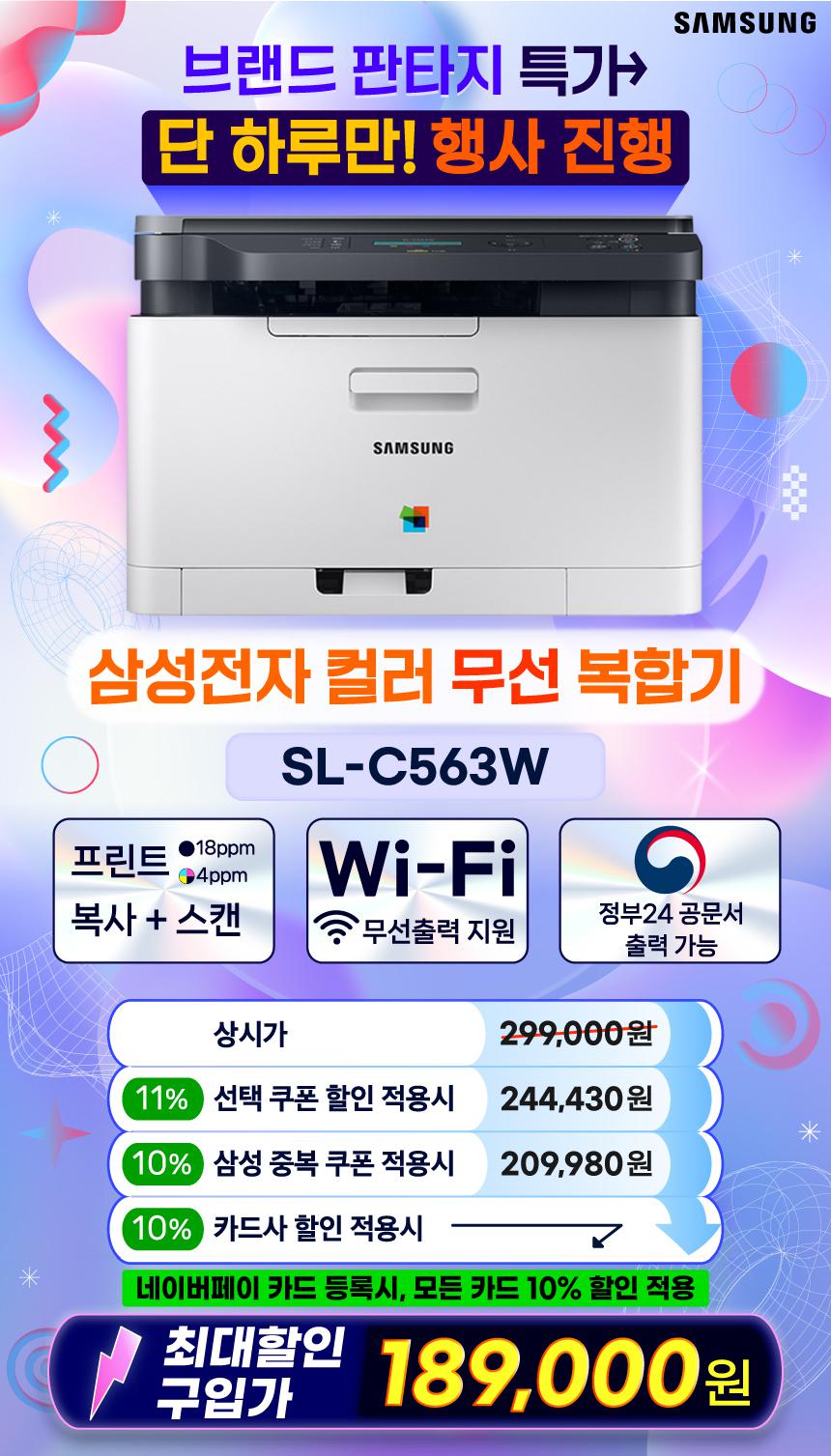 [롯데온] 삼성전자 컬러 레이저 무선 복합기 [SL-C563W] 할인 행사! (당일한정 / 189…