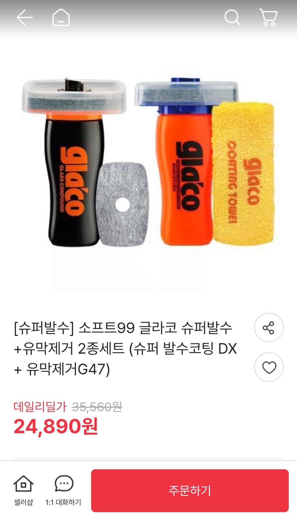 [위메프] 소프트99 글라코 슈퍼발수+유막제거 2종세트 DX+G47(무배)