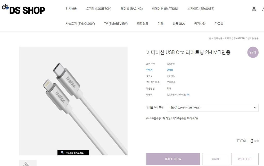 [기타] 이메이션 USB C to 라이트닝 케이블 2m (MFi인증)